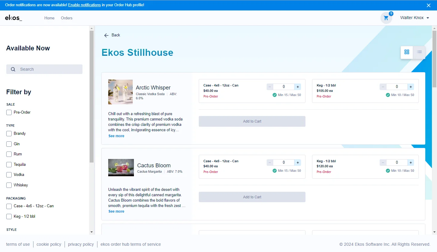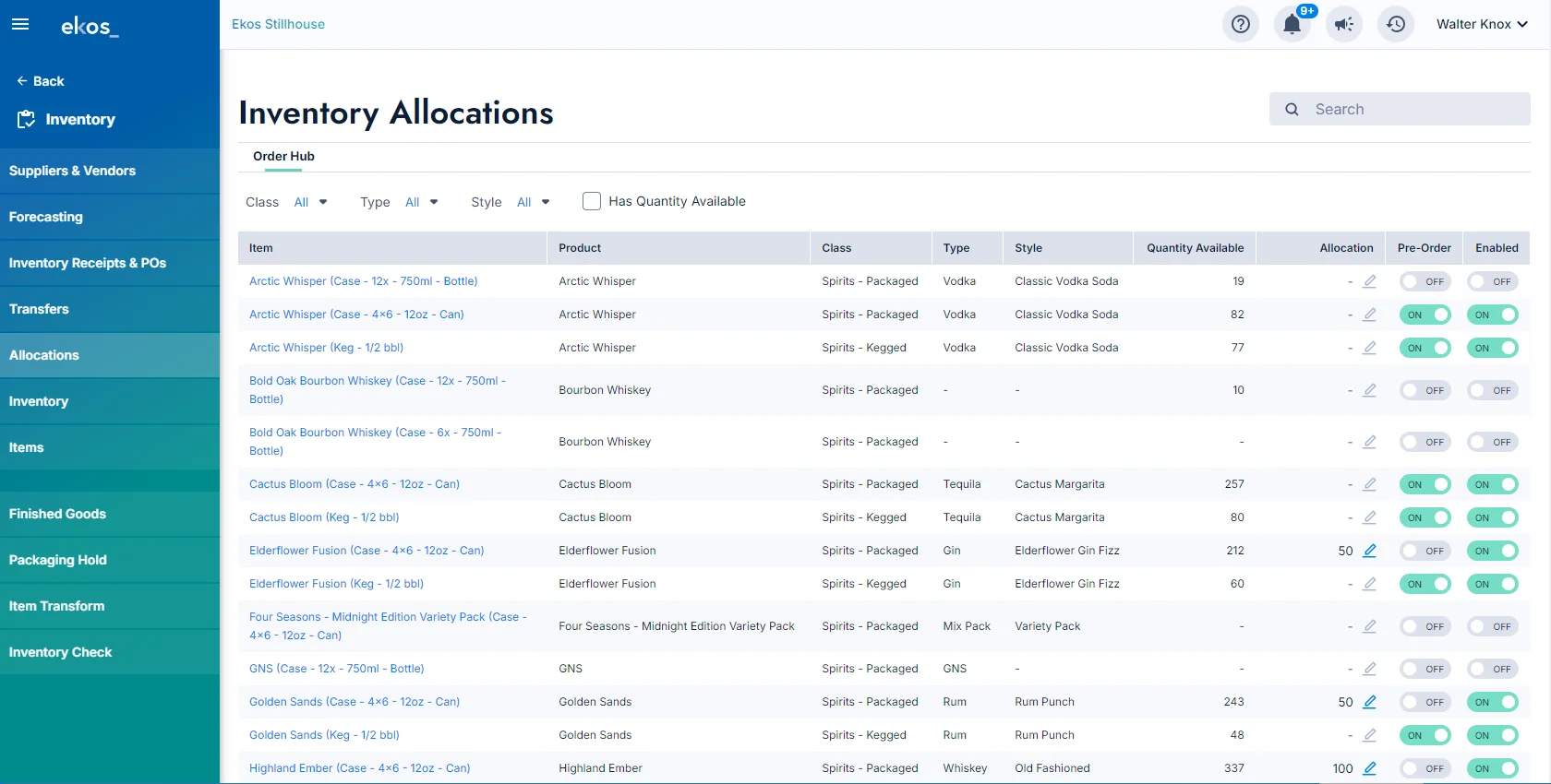 With Ekos, distilleries can prevent stockouts, track raw materials and finished goods in real time, and maintain better control over barrel aging and bottling inventory.